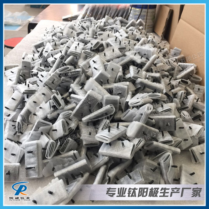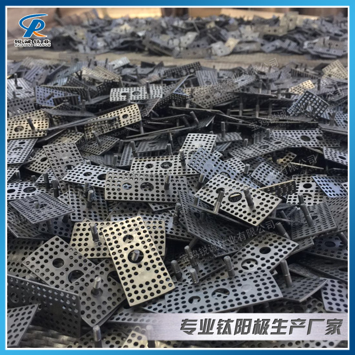 涂层钛电极钛阳极 涂 层钛电极是指以纯钛为基体,基体可以是钛棒、钛板、钛网、钛丝等形式,经过对钛基材表面进行特殊的处理,然后把金属或者金属氧化物、优选贵金属或者贵金属 氧化物涂镀到钛基体表面,使之结合为一体,这样钛基体的耐腐蚀性和表面附着的贵金属氧化物的导电性、催化活性有机地结合在一起,从而使钛电极具有卓越的性 能。
