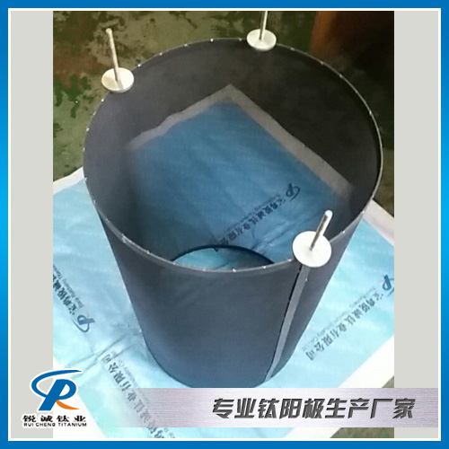 宝鸡锐诚钛业公司研发的电解、电镀用钛阳极,不溶性阳极是在钛基体(网状、板状、带状、管状等)上涂覆具有高电化学催化性能的贵金属氧化物涂层。新型不溶性钛阳极具有高电化学催化能,析氧过电位比铅合金不溶性阳极低约0.5 V,节能显著,稳定性高,不污染镀液,重量轻,易于更换。 新型不溶性钛阳极的析氧过电位也比镀铂不溶性阳极低,但是寿命却提高1倍以上。广泛用于各种电镀中作为阳极或者辅助阳极使用,可以替代常规的铅基合金阳极,在相同的条件下,可以降低槽电压,节约电能消耗;不溶性钛阳极在电镀过程中具有良好的稳定性(化学、电化学),使用寿命长。此阳极广泛用于镀镍镀金、镀铬、镀锌、镀铜等电镀有色金属行业。