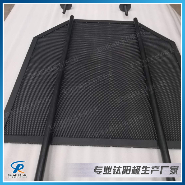 涂层钛电极钛阳极 涂 层钛电极是指以纯钛为基体,基体可以是钛棒、钛板、钛网、钛丝等形式,经过对钛基材表面进行特殊的处理,然后把金属或者金属氧化物、优选贵金属或者贵金属 氧化物涂镀到钛基体表面,使之结合为一体,这样钛基体的耐腐蚀性和表面附着的贵金属氧化物的导电性、催化活性有机地结合在一起,从而使钛电极具有卓越的性 能。